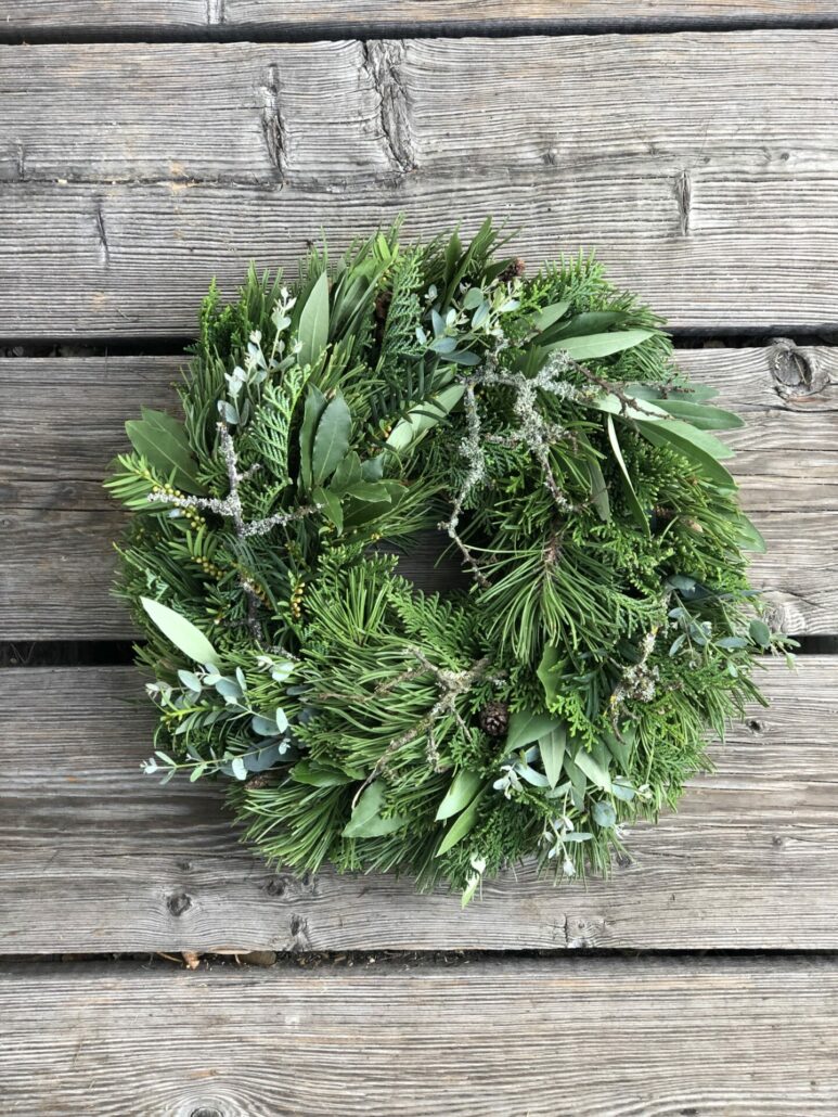 Das Kranzbinden brachte mir meine Schwiegermama bei, die aus Mangel an Tannzweigen, einfach alles Grüne aus der Natur in ihrem Kranz verwertete.