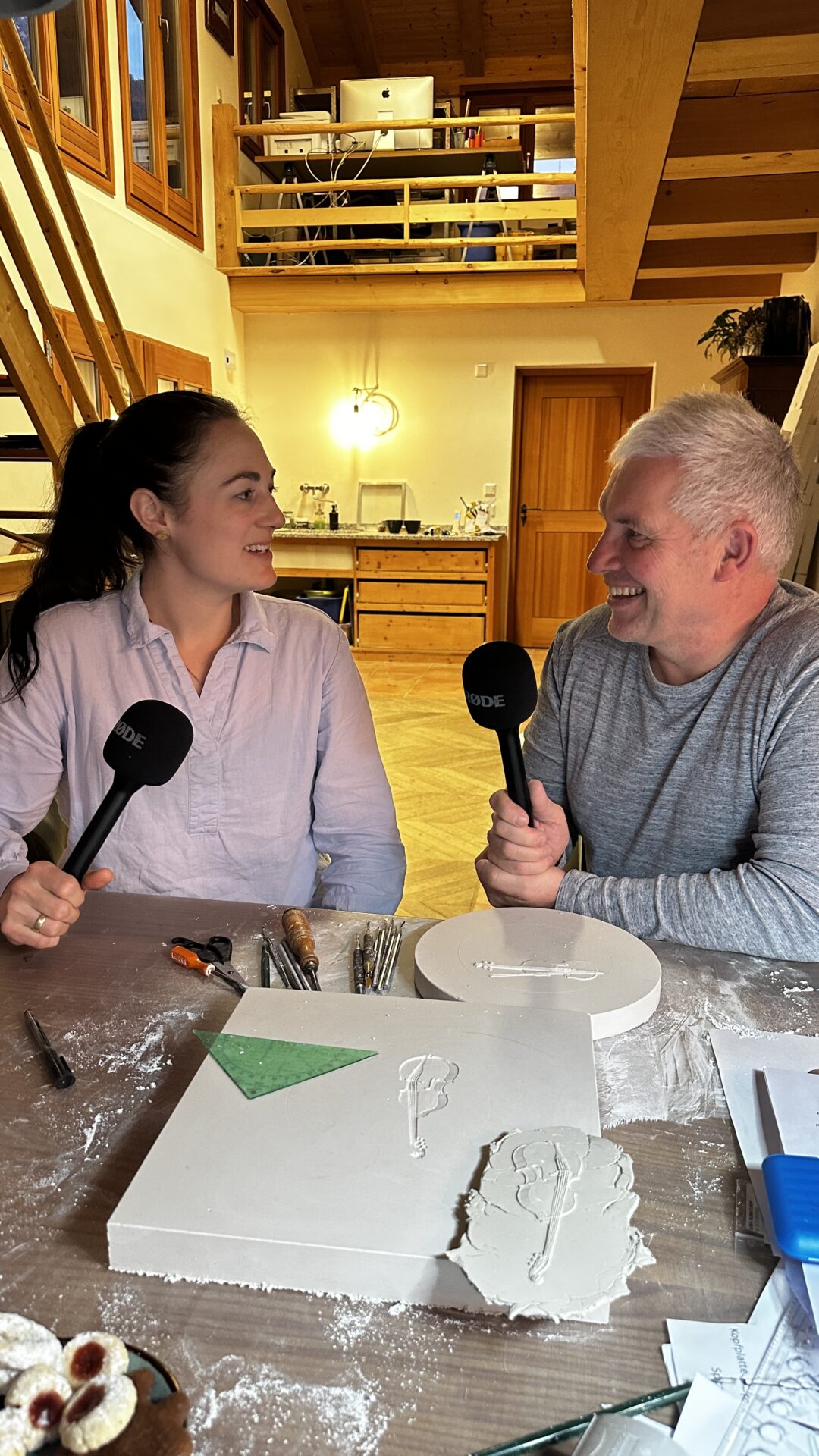 Die gebürtige Münchnerin Franziska kam 2013 als Sennerin auf die Rachlalm an der Hochplatte in Marquartstein. Dort haben sich die beiden kennengelernt. Wir haben das Ehepaar im Advent 2024 in ihrer Werkstatt in Marquartstein zum Interview getroffen.