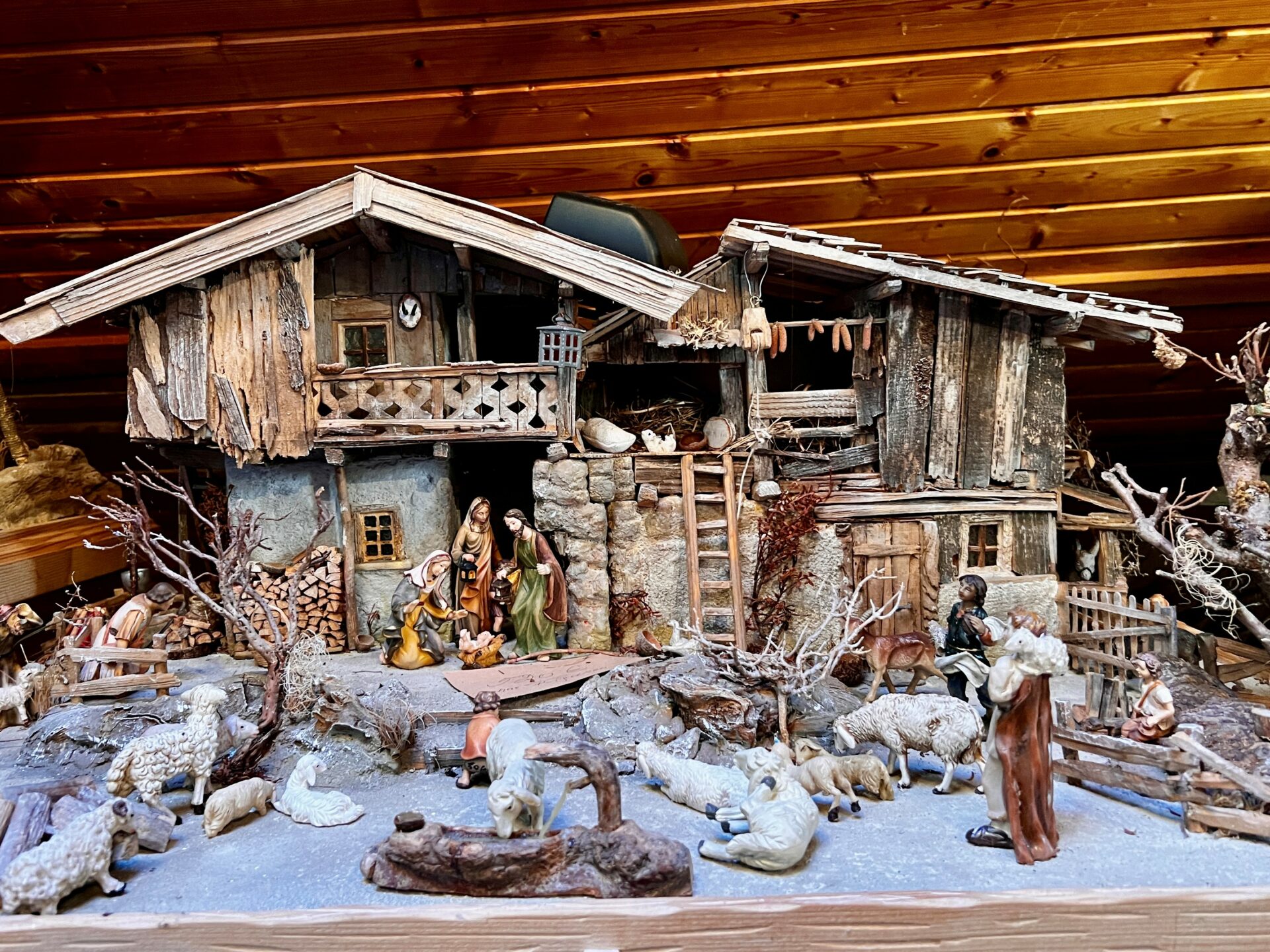 Gestern war ich aber in Erlstätt und habe Material für eine neue, große Krippe gekauft. Ich habe wieder Lust und mag einfach beschäftigt sein. Wenn du einmal angefangen hast, kannst du nicht mehr aufhören. Meine Werkstatt ist im Keller. Ich baue alles von Hand und frei aus dem Kopf heraus. Die Figuren für die Krippen baue ich aber nicht selbst. Ich kaufe sie alle in Innsbruck.