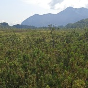 The raised bog is a largely treeless area. The rain bog in the Chiemgau Alps was formed over stagnant, impermeable glacial material after the last ice age. Due to the high rainfall and the spongy properties of the peat, the soil is so wet that only specially adapted plants grow there. These include some rare bladderwort species that catch small animals with their bladders. The mountain pine stands are characteristic of many bogs on the edge of the Alps.