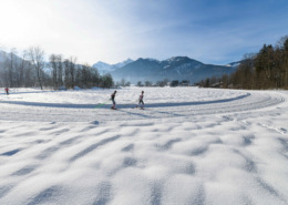 In the footsteps of professional biathlete Andi Birnbacher. Achental cross-country skiing paradise Ever since Bavaria’s first cross-country ski trail was groomed in the Chiemgau in 1964, the Chiemgau has developed into one of the best cross-country skiing regions. Over 500 km of well-maintained cross-country trails, mostly groomed in classic and skating style, are available to guests and locals free of charge. Everyone can decide according to their mood whether it should be the challenging cross-country ski runs with many ascents and descents or whether they prefer to enjoy gliding. If the weather doesn’t play along, you can have cross-country skiing fun on our high-altitude trails five months a year. You can also experience variety on our floodlit trails and at the biathlon taster course in the world-famous Chiemgau Arena. Preparation at the highest level! Well-groomed ski touring trails, 25 km classic and 20 km skating (free technique) are available to you with modern track equipment. Varied route through the beautiful winter landscape. We make you want more! Beginners as well as advanced skiers are in good hands at the local ski schools. Trained cross-country ski instructors not only teach the technique, but also have the most modern equipment available for hire. You can also take part in regular taster courses, which are offered for both techniques by the Nordic School in Achental!
