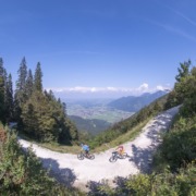 Either after climbing up or using the chairlift, we walk from the mountain station along the signposted path towards the Piesenhausener Hochalm. This very well-developed forest path is part of the “E4” (European long-distance hiking trail “Pyrenees-Neusiedler See”) as well as the “Maximiliansweg” and the “Via Alpina”. On the way there, we want to climb up the “Alten Plattenweg” and turn right after about 800 meters. We soon reach the forest road and immediately after that the entrance to the left towards the Piesenhausener Hochalm. It is a relatively demanding path that requires surefootedness. At the end of the path, we get back onto the forest road. Turning right, we soon reach the Hochalm. The alpine pasture invites you to linger with drinks and traditional alpine food. The view of the Chiemsee, the Kampenwand, the Hochplatte and also the Schlechinger valley is breathtaking. On the way back we walk the short distance back to the old Plattenweg, but continue the hike towards Hochplatte. At the saddle of the Haberspitz, we could now climb to the right to the Hochplatte, but we go downhill, past the Plattenalm and finally reach the starting point of our hike.Refreshment options: Piesenhausener Hochalm, Staffn Alm