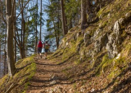 The hike begins at the mountain station of the Hochplattenbahn and leads past the Staffn-Alm, which not only offers the usual alpine food, over the somewhat steep climb to the start of the circular trail “Bergwalderlebnisweg Staffen”. On the forest road we go right, following the hiking signs with the destinations Rottauer Moier-Alm and Hefter-Alm. After about 900 m the hiking signs lead us to the right and after another 300 m we reach the turnoff to the left to the Rottauer Moier-Alm, which is 1000 m high. It invites you to have a snack or coffee and cake. If we follow the main path, however, we reach the Hefter-Alm, which is 880 m high, after about 1000 m. Delicious delicacies invite you to have a snack. The destinations Rachl-Alm and Staffn-Alm and also the mountain station as the destination of the hike are mentioned on the hiking signs. Across a meadow, past the Hufnagl-Alm, which is not managed, you reach the Rachl-Alm, which is 920 m high. Here, too, you can enjoy traditional alpine snacks, as well as coffee and cake. From the Rachl-Alm, the hiking signs indicate two different routes. The first route, which is indicated directly at the Alm, is a little shorter, but you have to use a “crossing” at the end, which requires surefootedness. Both routes lead over the relatively steep so-called winter hiking trail to the starting point at the mountain station. Refreshment options: Rottauer Moier-Alm, Hefter Alm, Rachl-Alm, Staffn Alm (please note the opening times)