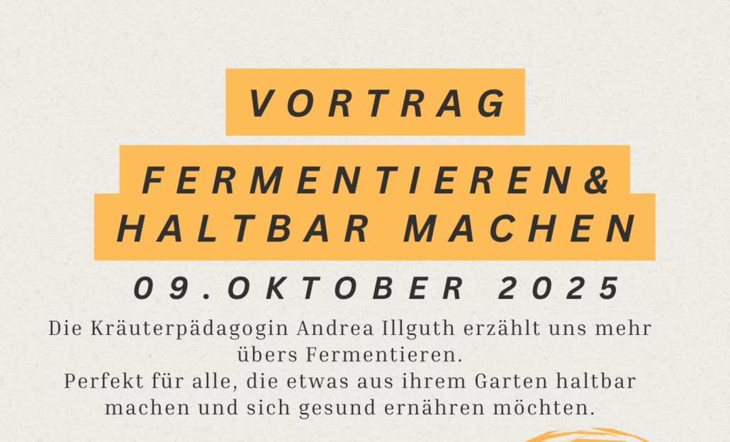 Der Gartenbauverein Marquartstein hat die Kräuterpädagogin Andrea Illguth eingeladen, einen Vortrag für uns zu halten zum Thema “Fermentieren – die älteste Form des Haltbarmachens”. Wir wissen, dass sich schon viele in Marquartstein auf den Vortrag freuen, deswegen: Seid auch mit dabei!