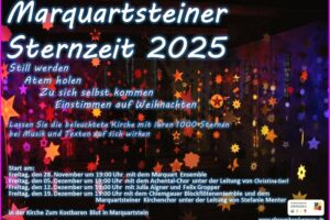 Als Einstimmung auf den 1. Advent findet um 19 Uhr ein Adventskonzert des Marquart Ensembles in der katholischen Pfarrkirche statt. Es spielen Corinna Halder (Querflöte, Cello), Luisa-Maria Halder (Violine, Klarinette), Dominika Schmidt (Klavier), Alexandra Scheufler (Harfe), es singt der Kirchenchor Oberwössen, Sprecherin ist Claudia Kraus. Der Eintritt ist frei, um Spenden wird gebeten.
