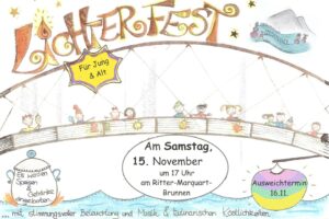 Herzliche Einladung der Marquartsteiner Stoamandl zum Lichterfest für Jung & Alt in Marquartstein – mit stimmungsvoller Beleuchtung und Musik. Um 17 Uhr startet der gemeinsame Lichterzug am Ritter-Marquart-Brunnen. Entlang des Achendamms geht es zum Feuerwehrhaus an der Neuen Brücke, wo alle gemütlich zusammenkommen. Für das leibliche Wohl ist gesorgt. Bitte eine Laterne mitbringen! Ausweichtermin 16.11.2025