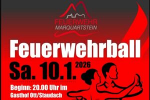 Feuerwehrball der Feuerwehr Marquartstein beim Gasthof “Zum Ott” in Staudach-Egerndach. Musikalisch wird “Vieraloa” für Stimmung sorgen und auch die Garde aus Grabenstätt wird wieder mit ihrem neuen Programm vertreten sein. Eintritt: 7€ (VVK und Abenkasse).