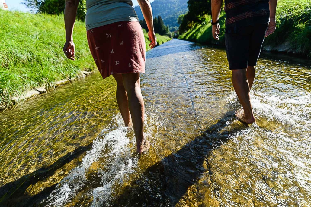 Kneippen ist erfrischend und gesund! Die Hydrotherapie ist die wohl berühmteste Anwendung nach Naturheilkundler und Pfarrer Sebastian Kneipp. Im Achental laden nicht nur mehrere Kneipp-Becken zum Wassertreten ein, sondern auch der Wössner Bach. Rund um unser Bergsteigerdorf Schleching gibt es sogar einen Kneipp-Wanderweg.