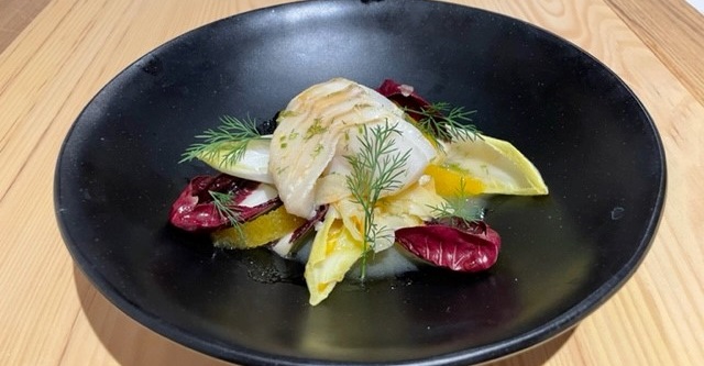 Lauwarmer Kabeljau auf Chicorée-Fenchelsalat mit Orangenvinaigrette