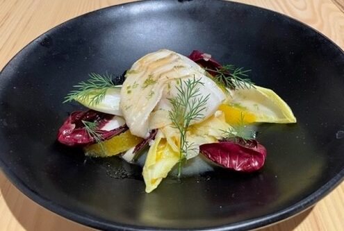 Lauwarmer Kabeljau auf Chicorée-Fenchelsalat mit Orangenvinaigrette…
