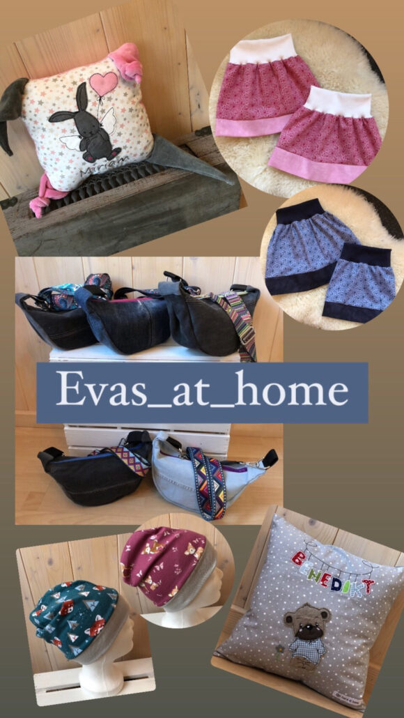 Mit viel Gespür für Farben, Stoffe und persönliche Wünsche fertigt Eva’s @ home liebevoll genähte Accessoires für Groß und Klein. Ob personalisierte Kissen, Schmusetücher, Stirnbänder, Geldbeutel oder Mützen – jedes Stück ist individuell und mit Sorgfalt gemacht. Ein besonderes Geschenk oder ein neues Lieblingsstück für den Alltag!