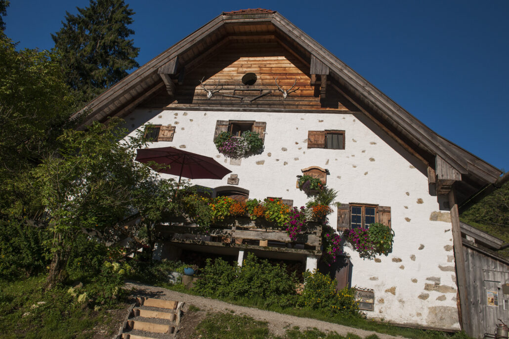 Die bewirtschaftete Hefteralm im Wandergebiet Hochplatte ist das perfekte Ziel für eine Familien-Almwanderung.