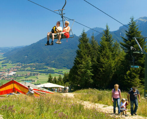 Mit der Hochplattenbahn geht es zur Hochplatte. Die Bergstation der Hochplattenbahn ist der perfekte Ausgangspunkt für Wanderungen, die Drachenflieger-Startrampe, den Bergwalderlebnisweg und eine Einkehrmöglichkeit in der nahe gelegenen Staffn-Alm.