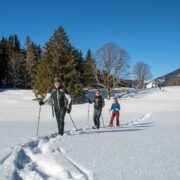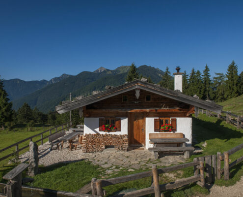 Etwa 20 Jungrinder dürfen jedes Jahr ihren “Sommerurlaub” auf der Oberauerbrunst Alm hoch über dem Schlechinger Tal verbringen. Für Naturliebhaber lohnt sich besonders zu Beginn des Almsommers im Mai eine Wanderung zur Alm am Südhang der Chiemgauer Hochplatte. Denn dann blüht rund um die Almhütte der stängellose Enzian in voller Pracht und verwandelt die Almwiesen in ein blaues Blütenmeer. Genießer sollten unbedingt die frischen Almnussen probieren, die zu den kulinarischen Spezialitäten der Oberauerbrunst Alm zählen. Gipfelstürmer wandern von der Alm weiter hinauf auf den Gipfel der Chiemgauer Hochplatte.