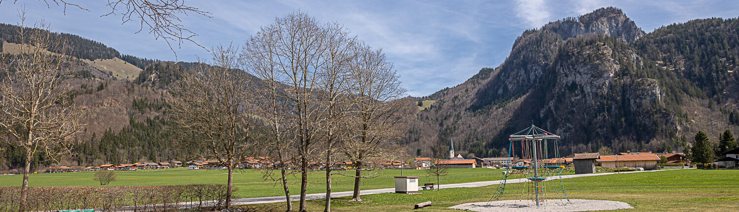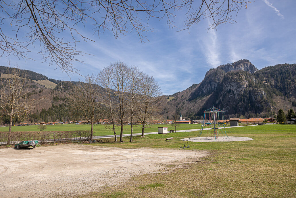 Parkplatz am Spielplatz in Hinterwössen. Das Parken ist kostenlos.