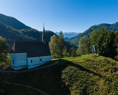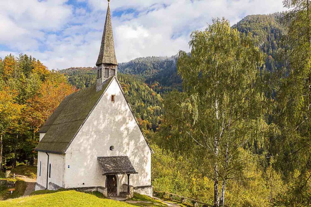 Hoch über dem Tal der Tiroler Ache thront die Streichenkirche. Die Wandmalereien der im 12. Jahrhundert an einem Saumpfad erbauten Kirche sind ein außergewöhnliches Zeugnis mittelalterlicher Kirchenkunst.