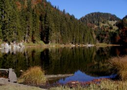 Seinen Namen verdankt der Taubensee übrigens nicht den fliegenden Tauben, sondern Steinkrebsen – auf bairisch “Daubben” genannt – die neben zahlreichen Fischarten, Fröschen und Muscheln im See heimisch sind. Die Krebse können nur aufgrund der hervorragenden Wasserqualität im See leben. Der Taubensee hat keine großen Zuflüssee und keinen Abfluß, sondern wird von Oberflächenwasser und schmelzendem Schnee gefüllt. Seine dunkelblaue Färbung und die ovale Form haben dem Taubensee zudem den Beinamen “Auge des Chiemgaus” eingebracht. Mitten durch den bis zu 40 Meter tiefen See verläuft die Grenze zwischen Bayern und Tirol.