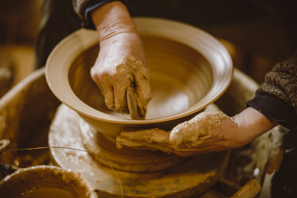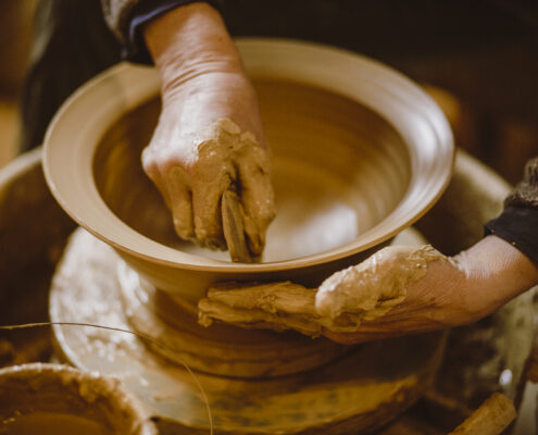 In der Töpferei im Stidl-Zuhaus fertigt Töpfermeisterin Waltraud Schillmeier mit viel Leidenschaft und Können handgearbeitete Keramik. Ihre Teller, Schüsseln und dekorativen Stücke entstehen in traditioneller Handarbeit auf der Drehscheibe und sind echte Unikate. Hier findet ihr besondere Keramik für den Alltag oder als einzigartiges Mitbringsel aus dem Achental.