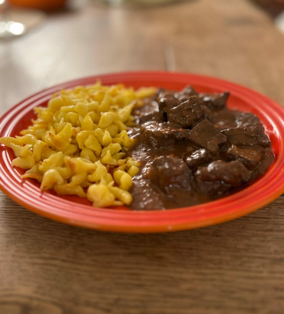 - Jetzt noch das Rehgulasch anrichten und genießen!