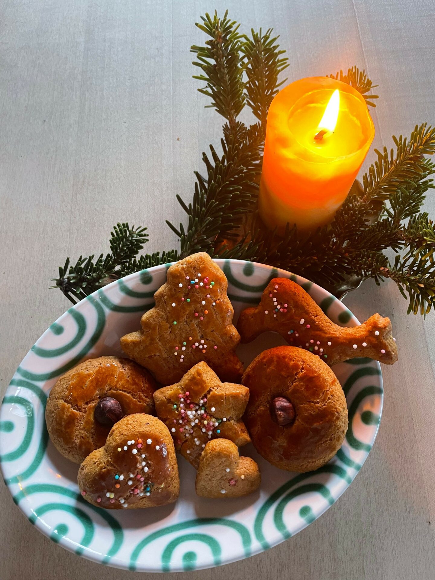 - Formen & Verzieren: Den Teig am nächsten Tag etwa 1 cm dick ausrollen, mit Eigelb bestreichen und nach Belieben verzieren.