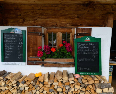 Einkehrmöglichkeit: Oberauerbrunst-Alm (*); (*) almtypische Brotzeit, Kaffee und Kuchen während der Almweidezeit (bitte Öffnungszeiten beachten)