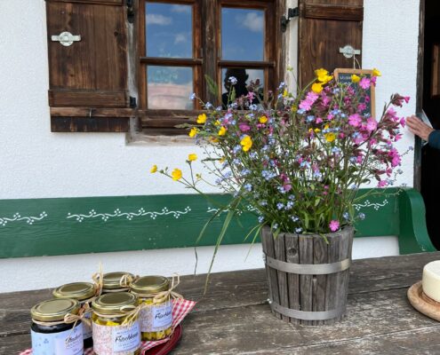 Einkehrmöglichkeit: Berggasthof Wuhrsteinalm (derzeit geschlossen), Grafn-Kaser (ausschließlich Getränkeausschank) (*), Rossalm (*), Haidenholzalm (*); (*) almtypische Brotzeiten, Kaffee und Kuchen während der Almweidezeit (bitte Öffnungszeiten beachten)