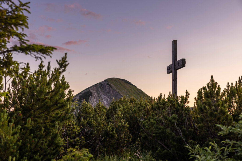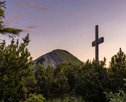 Beschreibung: Die Idee für die Tour ist angelehnt an des bekannte Pendant “Kleine Reibn” in den Berchtesgadener Alpen und setzt eine gute Kondition voraus. Ausgangspunkt der Tour ist der Wanderparkplatz Geigelstein. Von hier aus geht es zunächst auf dem Forstweg, anschließend über die ehemalige Skiabfahrt in Richtung Wuhrsteinalm. Nun wird dem links abzweigenden Weg in das sogenannte Karl gefolgt und im Anschluss der erste der drei Gipfel, der Breitenstein, bestiegen. Nach einer kurzen Rast und dem Genuss des wunderschönen 360 Grad Gipfelpanoramas geht es entspannt die Gipfelkuppe des Breitenstein bis zum Geigelsteinsattel hinab. Dort angekommen, geht es nun erneut zwischen Latschen und steinigem Boden steil bergan, bis man den höchsten der Achentalgipfel, den Geigelstein erreicht. Der Beschilderung in Richtung Roßalm folgend, bildet der dritte Gipfel, der Weitlahner Kopf, den perfekten Abschluss für die “Kleine Schlechinger Reibn”. Über die Haidenholzalm, auf der noch eine verdiente, herzhafte oder süße Stärkung wartet, geht es in Richtung Ausgangspunkt zurück.