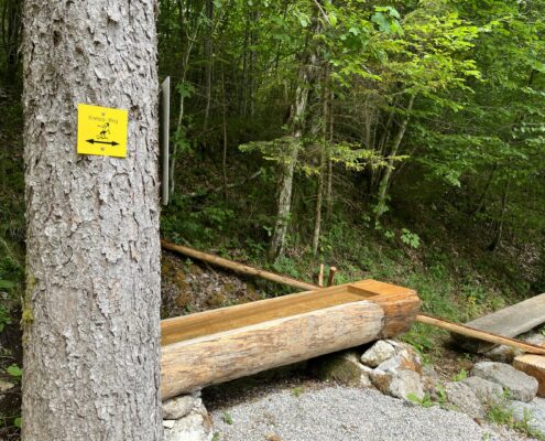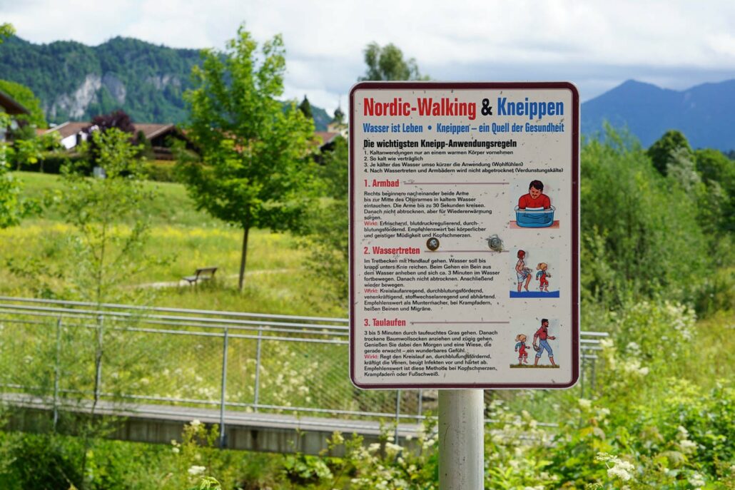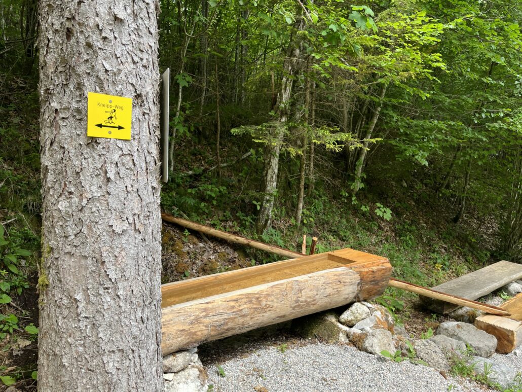 Beschreibung: Start der etwa 3,5 Kilometer langen, leichten Wanderung ist an der Tourist-Information am Dorfplatz in Schleching. Auf abwechslungsreichen Wegen führt die Runde durch die malerische Natur. Für den Kneipp-Rundweg, der durch ein „Kneippinger“-Symbol gekennzeichnet ist, sollten rund eineinhalb Stunden eingeplant werden. Von der Tourist-Information in Schleching führt der Pfad zuerst Richtung Ettenhausen. Am Alpbach entlang gelangt man nach 5 Minuten zur Kneippanlage, wo Mehrgenerationen-Trimmgeräte zur sportlichen Betätigung einladen. Weiter geht es Richtung Ettenhausen entlang des Alpbaches. Der Weg führt in den Wald hinein und über schmale Pfade. Wer möchte, wandert dort einen kleinen Abschnitt des Rundwegs zudem in einem Bachbett und lässt seine Füße von den sanft gerundeten Steinen im Wasser massieren. Im weiteren Verlauf sorgt ein Armbadebrunnen für Abkühlung an warmen Tagen und eine Ruheliege biete die Möglichkeit der Natur und dem Rauschen des Wassers zu lauschen.