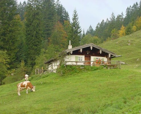 einer Stärkung beim „Huber-Kaser“ geht es weiter zu den Hinteren Dalsenalmen und danach über den schönen Klausgraben hinunter zum Ortsteil Hainbach bei Sachrang.
