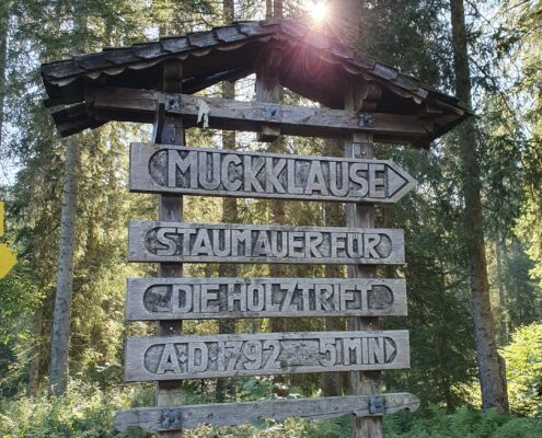 Besonderheiten: Die Muckklause diente (1626 erstmals erwähnt, 1792 massiv aus rotem Marmor erbaut) als Talsperre für das „Holztriften“.