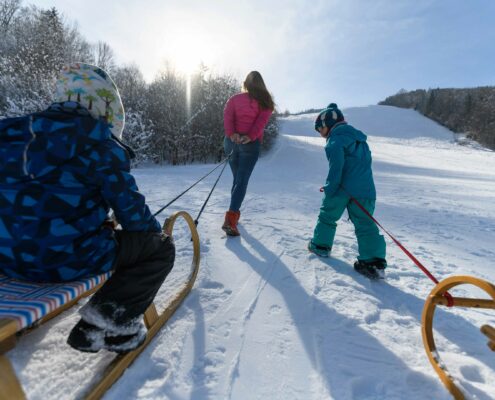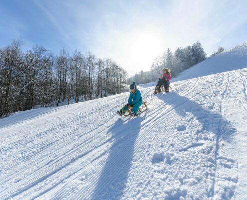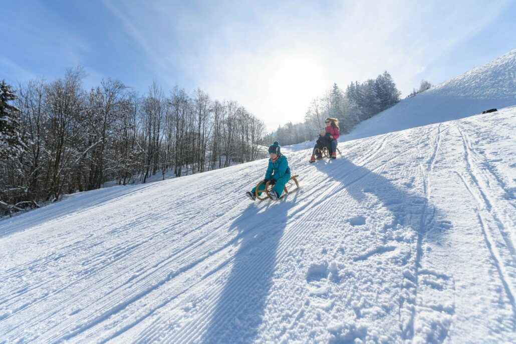 Vorsicht! Die Naturrodelbahn ist auch ein Winterwanderweg – bitte auf Wanderer Rücksicht geben.
