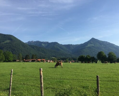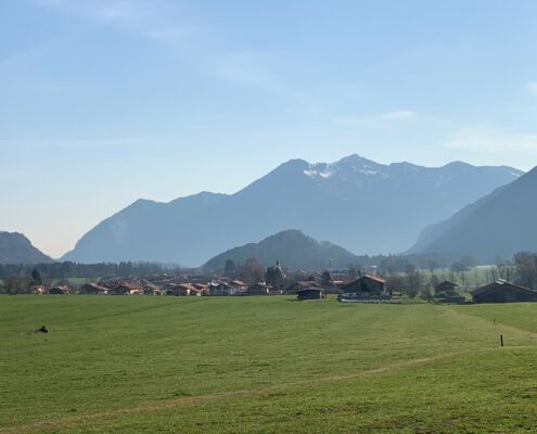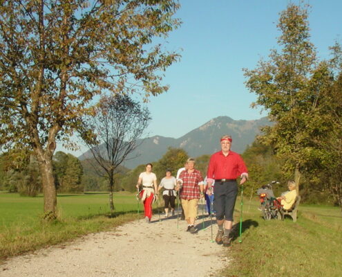 Einfache Nordicwalking-Runde um Schleching und Ettenhausen herum mit wunderbarem Ausblick auf die umliegenden Berge.