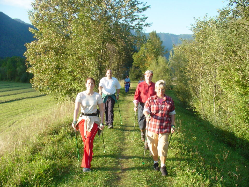 Die Tour führt uns von Schleching in die Ortsteile Mühlau und Mettenham, zum Zellersee und auf den Achendamm. Sie ist abwechslungsreich mit zwei kurzen Steigungen und bietet schöne Ausblicke auf die umliegende Bergwelt. An heißen Tagen lädt der Zellersee zum Baden ein.Wir starten die Nordicwalking-Tour in Schleching Richtung Mühlau. Kurz vor dem Ortseingang steht links eine Kapelle. An dieser biegen wir in den schmalen, schön schattigen Pfad rund um den Mühlberg ab und gehen diesen bis zum nächsten Abzweig nach rechts weiter. Im Verlauf halten wir uns dann immer rechts und gehen den zunächst ansteigenden Weg weiter um den Mühlberg bis wir wieder auf eine Forststraße treffen. Auch hier biegen wir rechts ab und gehen zurück bis auf die Asphaltstraße. Dort biegen wir links ab, gelangen nach Mühlau, überqueren die Brücke und biegen danach rechts ab. In die nächste Querstraße biegen wir links ab und folgen der Beschilderung Richtung Mettenham. In Mettenham halten wir uns links und folgen der Beschliderung Richtung Zellersee. Es geht aus dem Ortsteil heraus wieder leicht bergauf bis wir in den Wald kommen. Dort halten wir uns rechts und erreichen nach kurzer Zeit den schönen Zellersee. An der ersten Möglichkeit biegen wir hier rechts ab, umrunden den See zu Hälfte und folgen dem schön schattigen Weg bis wir zum Gasthof Zellerwand gelangen. Diesen passieren wir auf dem Fussgänger- und Radweg und biegen kurz vor Mettenham links in einen schmalen Pfad entlang der Filze ab. Am Ende des Pfads gelangen wir auf den Weg entlang des Buchbergs und biegen auf diesen rechts ab. Am Parkplatz Buchberg biegen wir links ab und folgen dem Mühlbach bis auf den Achendamm. Rechts gehen wir auf diesem weiter entlang der Ache, biegen an der zweiten Möglichkeit wiederum rechts ab und gelangen zurück zum Ausgangspunkt nach Schleching.