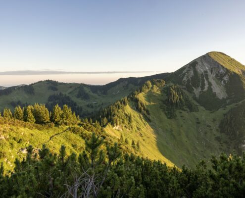 Bergwanderung über den Grießelberg-Steig (Gamsweg) und Karl zum Karkopf weiter zur Priener Hütte. Zwischen Geigelstein und Breitenstein über den Sattel zurück ins Tal