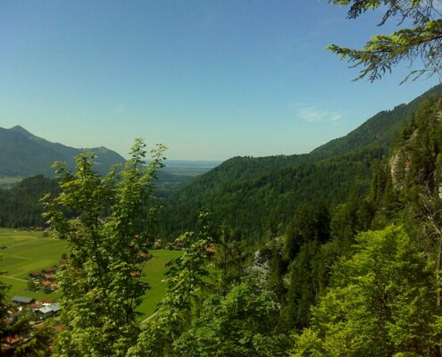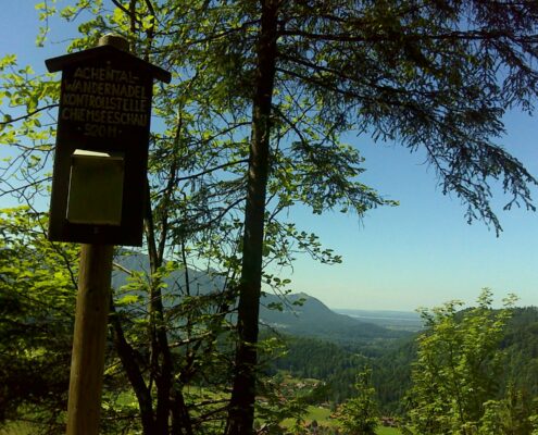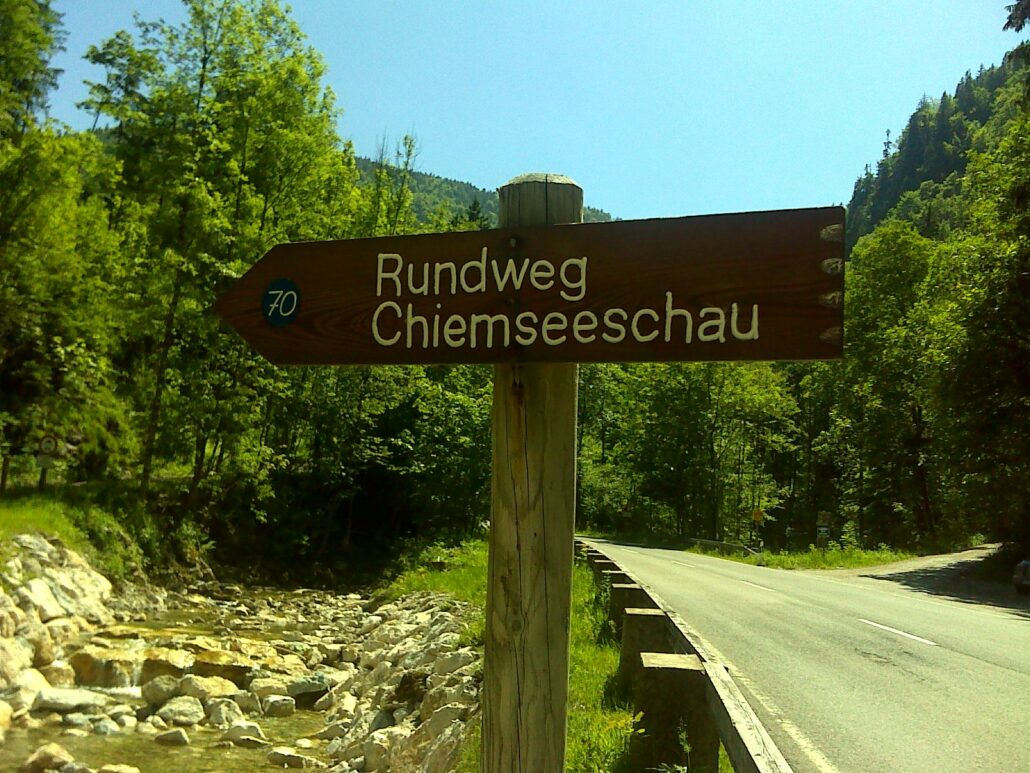 Von der Tourist-Information gehen wir entlang der Deutschen Alpenstraße in Richtung Reit im Winkl. Nach etwa 500m beginnt der Weg Nr. 70 zur Chiemsee-Schau gegenüber einem kleinen Parkplatz bei der Brücke über den Maserer Bach wenden Sie sich nach links und nun geht es auf einem Forstweg hinauf. Sie folgen diesem bis zu einem Abzweig auf der linken Seite, der Sie bald zur Chiemsee-Schau mit traumhaften Ausblick bringt. Der schöne Weg führt geradeaus weiter in einer großen Schleife über den Lackenberg-Forstweg wieder zum Ausgangspunkt zurück. Der Aussichtspunkt Chiemsee-Schau bietet Ihnen einen Panoramablick ins Achental bis zum Chiemsee.