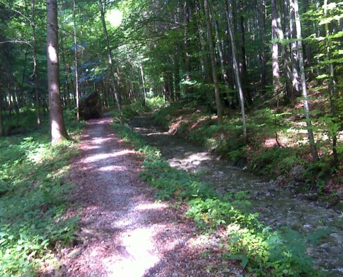 Beschreibung: Tourist-Information – Daxer Bachl – Wanderparkplatz Hammerergraben – Moosbach – Kinderspielplatz Hinterwössen – Tourist-Information