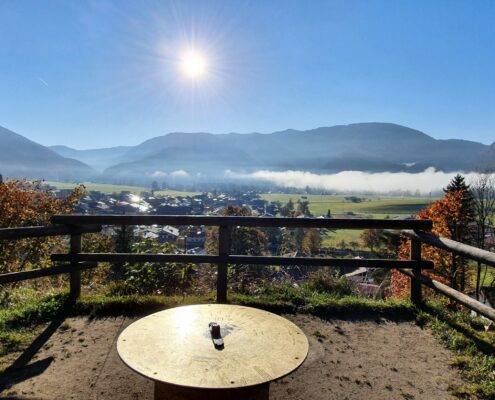 Besonderheiten: wunderbarer Ausblick auf den Ort Reit im Winkl und das malerische Zahme Kaisergebirge im Hintergrund
