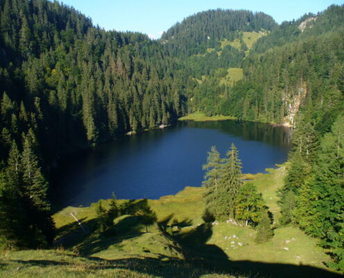 Besonderheiten: wunderschöner, erfrischender Bergsee mit Bademöglichkeit; seltene Krebse im See; skurrile Felsenlöcher am Seeufer
