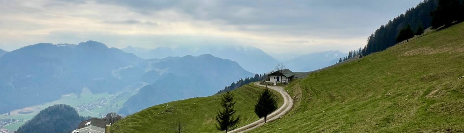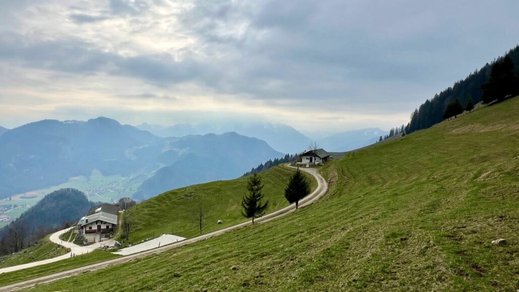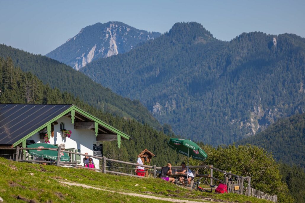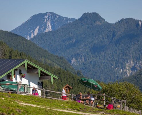 Auf der breiten Forststraße unterhalb der Alm lohnt sich ein kurzer Halt, um den Blick in die Ferne schweifen zu lassen und die Aussicht zu genießen. Nach einer Erfrischung oder einer zünftigen Brotzeit auf der Rechenbergalm (1.160 m) geht es weiter über schmalere Steige, zunächst über die Almwiese und dann fast eben durch den Wald in Richtung Jochbergalmen (1.274 m). Auch hier empfiehlt sich eine Rast, um das typische Alm-Angebot zu genießen.