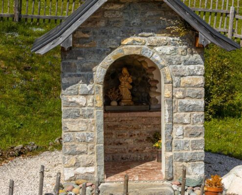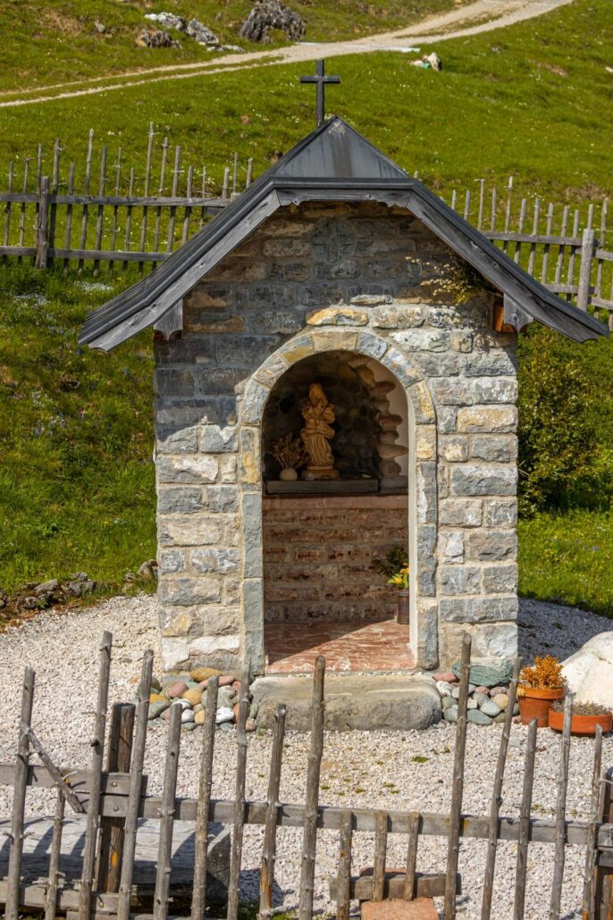 Von der Bushaltestelle Brem folgt man der Hammerergraben-Straße bis zum ersten Wanderparkplatz und biegt dort links auf die Forststraße Richtung Rechenbergalm ab. Der schattige Weg führt vorbei an einer Holzfigur und hinauf zum ersten Almengebiet, der Burgau. Dort lädt die kleine Kapelle am Wegesrand zu einer kurzen Besichtigung ein, bevor man der Beschilderung weiter bergauf in Richtung Rechenbergalm folgt.