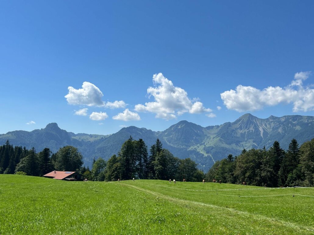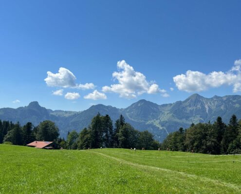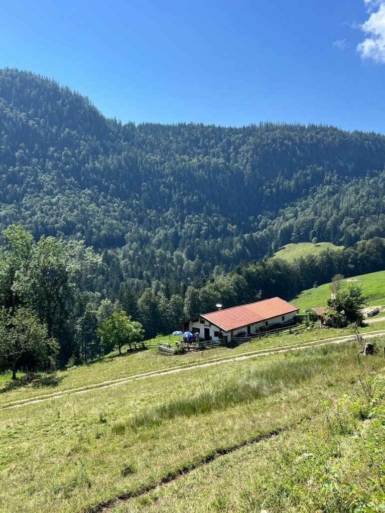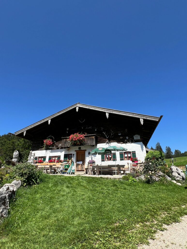 Schöne Wanderbuswanderung von Wanderparkplatz Hinterwössen über bewirtschafte Almen und Streichenkirche zum Streichenparkplatz bei Schleching.