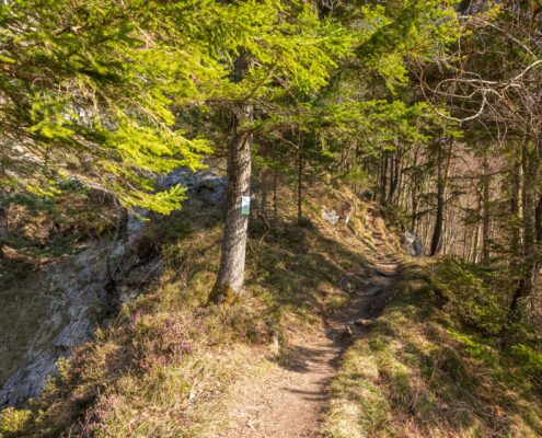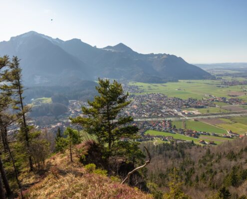 Beschreibung: Vom Wanderparkplatz (alternative (ca. 15 min längere) Variante: vom Rathaus Marquartstein) aus folgen wir den gelben Wanderwegschildern in Richtung Windeck. Der Weg führt uns ein kurzes Stück im Wald bis zur Forststraße, auf der wir nach links gehen. Nach kurzer Zeit auf der Forststraße biegen wir an der so genannten “Fütterung” wieder nach links in den Schnappenwegin Richtung Windeck und Schnappenkirche ein. Wieder nach kurzer Zeit weist ein Wanderschild nach links zum Windeck, das wir nach ca. 600 Metern erreichen. Dort angekommen genießen wir den Panoramaausblick über das Achental und Marquartstein. Eine Sitzbank lädt zur Rast ein. Auf demselben Weg geht es wieder zurück zum Ausgangspunkt.