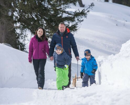 Tipp: Wer einen Schlitten oder einen Bob dabei hat, kann zurück ins Tal rodeln – aber Vorsicht, die Forststraße wird nicht präpariert!