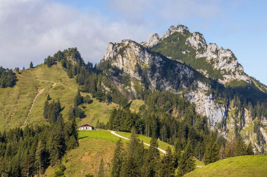 Beschreibung: Die Wanderung beginnt an der Talstation der Hochplattenbahn. Bei Auffahrt mit der Bahn kann man die ersten 500 Höhenmeter bequem bewältigen und spart ca. eine Dreiviertelstunde Aufstieg. Von der Bergstation (1.040 m)wandert man linker Hand auf einem Forstweg aufwärts – zunächst durch den Bergwald, dann über Almengebiet vorbei an der Plattenalm. Am Scheitelpunkt des Weges, dort wo nach links der Weg zum Hochplattengipfel und nach rechts der Weg zum Haberspitz abzweigen, sieht man geradeaus vor sich schon die Piesenhauser Hochalm liegen. Es folgt ein leichter Abstieg zur von Mitte Mai bis Kirchweihmontag bewirtschafteten Alm (1.350 m)