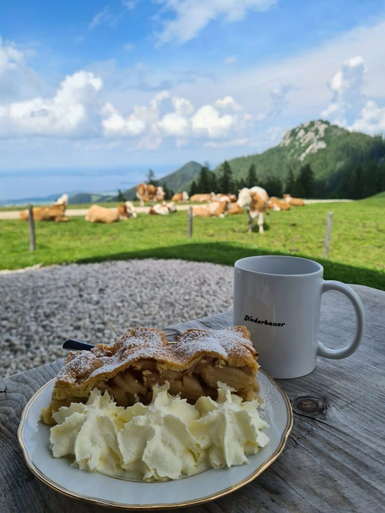 Einkehrmöglichkeiten: Berggasthof Staffn-Alm, Piesenhausener Hochalm (*), Steinling Alm (mit Umweg) (*) almtypische Brotzeit, Kaffee und Kuchen (bitte individuelle Öffnungszeiten beachten)
