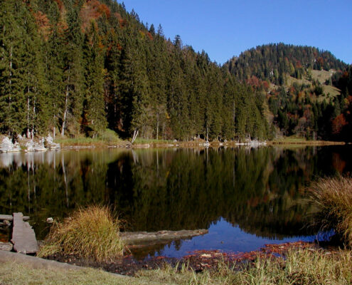 Mittelschwere Wanderung über das Almgebiet Röthelmoos nach "Klein-Kanada" zum 3-Seen-Naturschutzgebiet (Weitsee).