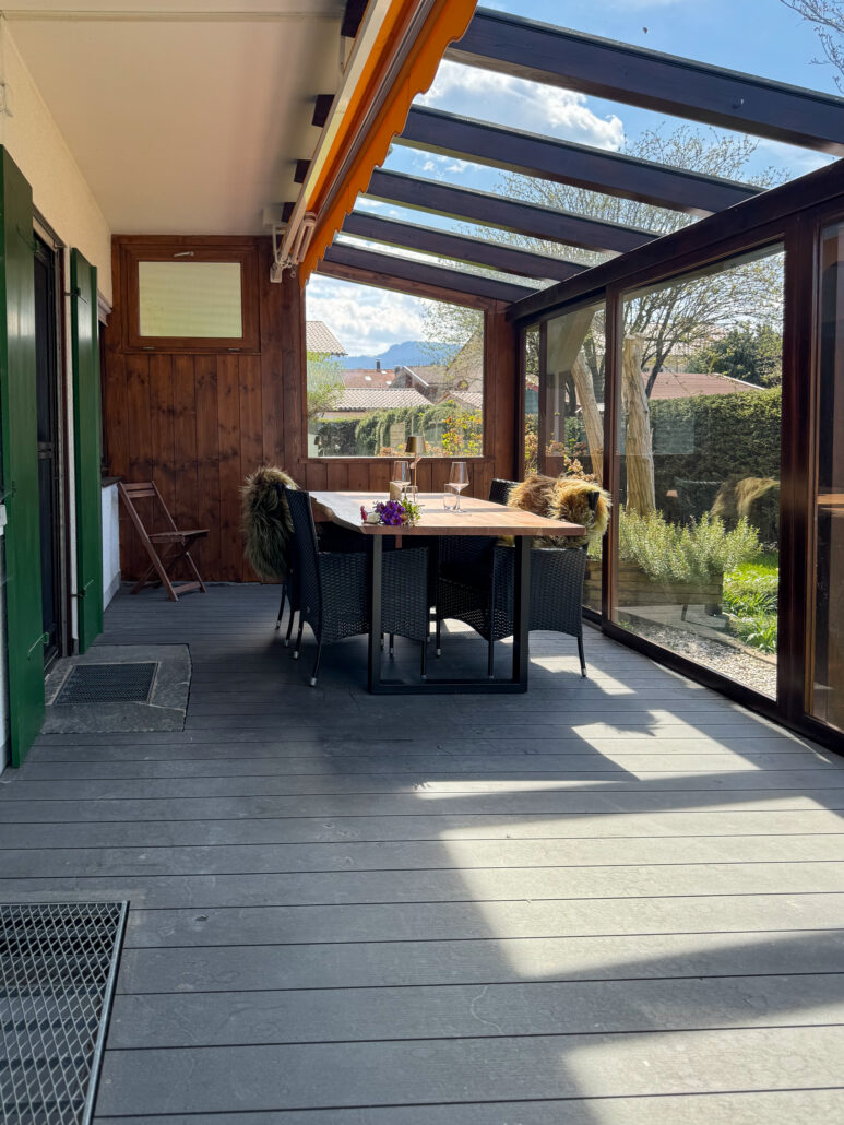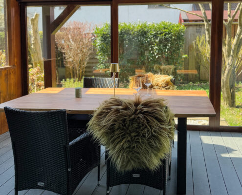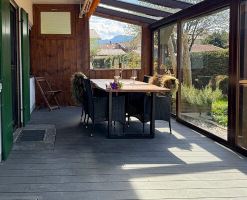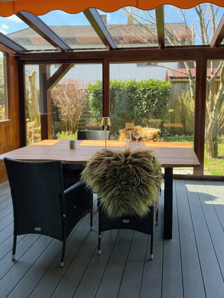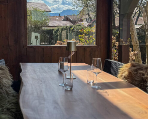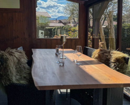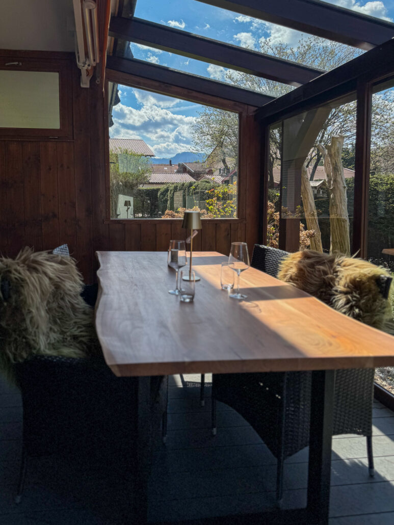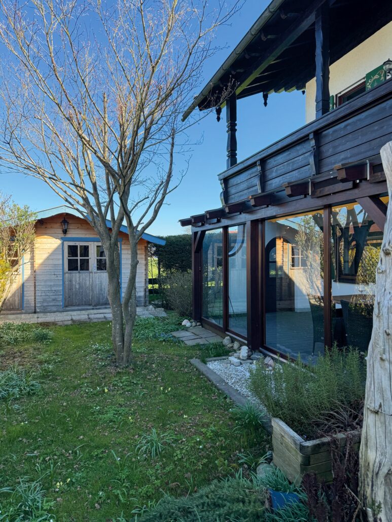 72 Quadratmeter Heimat auf Zeit – großzügig, heimelig und eingebettet in die Achentaler Bergwelt. Das Herzstück des Haberspitz-Apartments ist, der große und lichtdurchflutete Wintergarten mit Blick auf den Ausläufer der Hochplatte. Ob morgendlicher Kaffee oder ein Glas Wein im Abendrot – hier sitzt man fast wie im Freien, nur eben windgeschützt und schwelgend. Wer Naturverbundenheit mit alpenländischem Charme, gediegene Holzelemente mit handverlesenen Details und den Duft frischer Landluft sucht, spürt hier sofort: Der Alltag macht Pause. Ideal für Paare, Familien oder Freunde – charmant, entspannt und ruhig gelegen zwischen Grassau und Marquartstein.