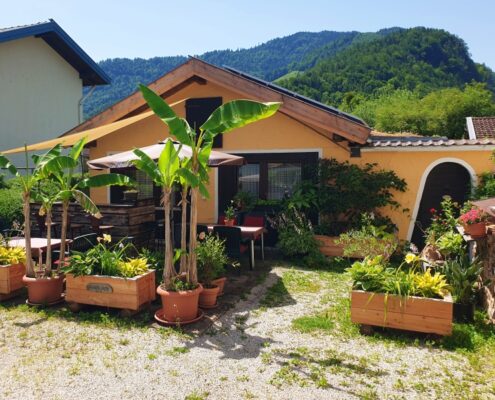 Unsere Ferienwohnungen befinden sich in ganzjähriger, sonniger und ruhiger Lage. Vom Parkplatz des Casa Shania führt eine Außentreppe zum Eingang in den Flur der beiden Ferienunterkünfte. Die Balkone der beiden Wohneinheiten sind überdacht und nach Südwesten ausgerichtet, von dort aus genießen sie einen traumhaften Panoramablick in die umliegende Bergwelt. Sollten sie Raucher sein, so ist das auf den Balkonen gestattet, aber bitte nicht im Wohnbereich. In den Sommermonaten haben wir für unsere Gäste einen gemütlichen Sitzplatz im Freien direkt neben dem Parkplatz eingerichtet.