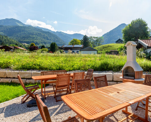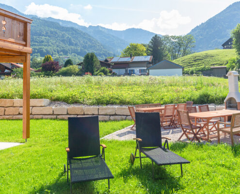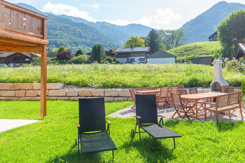 Zahlreiche Berg-Rad- und Wandertouren können Sie von der Haustüre aus starten. Der Garten bietet ihnen eine schöne, gepflegte Liegewiese mit Blick auf den Hochgern, Hochplatte, Geigelstein und Jochberg. Für einen gemütlichen Grillabend steht Ihnen ein Grill mit Grillbesteck auf der Terrasse im Garten zur Verfügung.