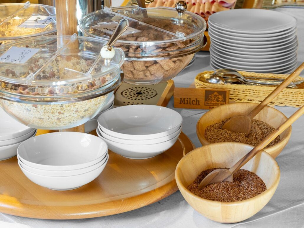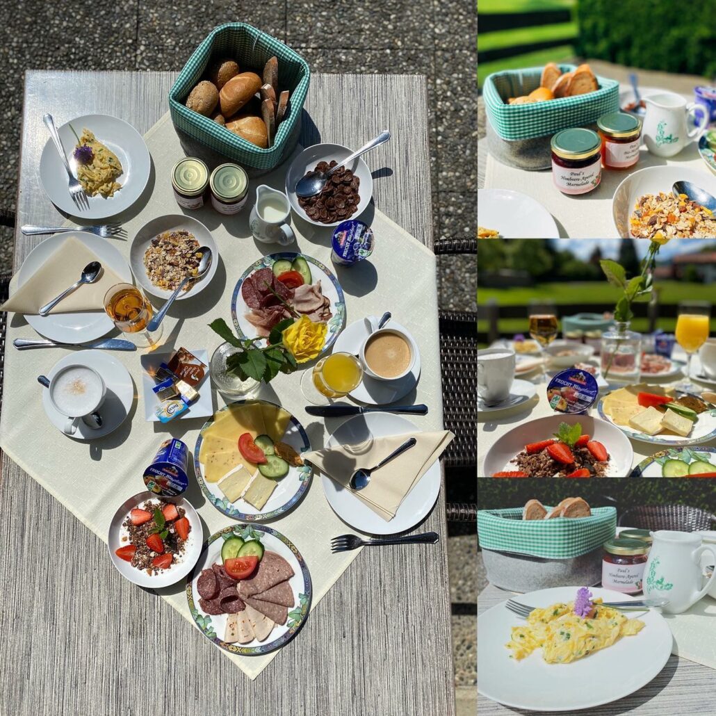 Wir bieten dafür unseren Frühstückskorb „Chiemgau“ an, den Sie sich neben einem Basisfrühstück (Butter, 2 Semmeln pro Person, Marmelade, Honig von lokalen Imkern, Nutella, 1 Heißgetränk) individuell selbst mit verschiedenen Getränken und Essen zusammenstellen und erweitern können.